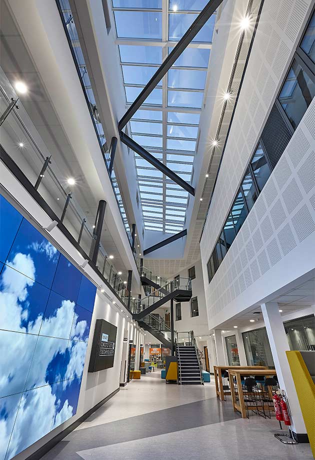 A motivation at the planning stage was to inspire learning through building design. The college wished to create a professional environment that motivates learning the moment students step into a central atrium full of daylight. But to achieve this goal and communicating largely online, contractor Willmott Dixon required a reliable and adaptable daylighting partner.
