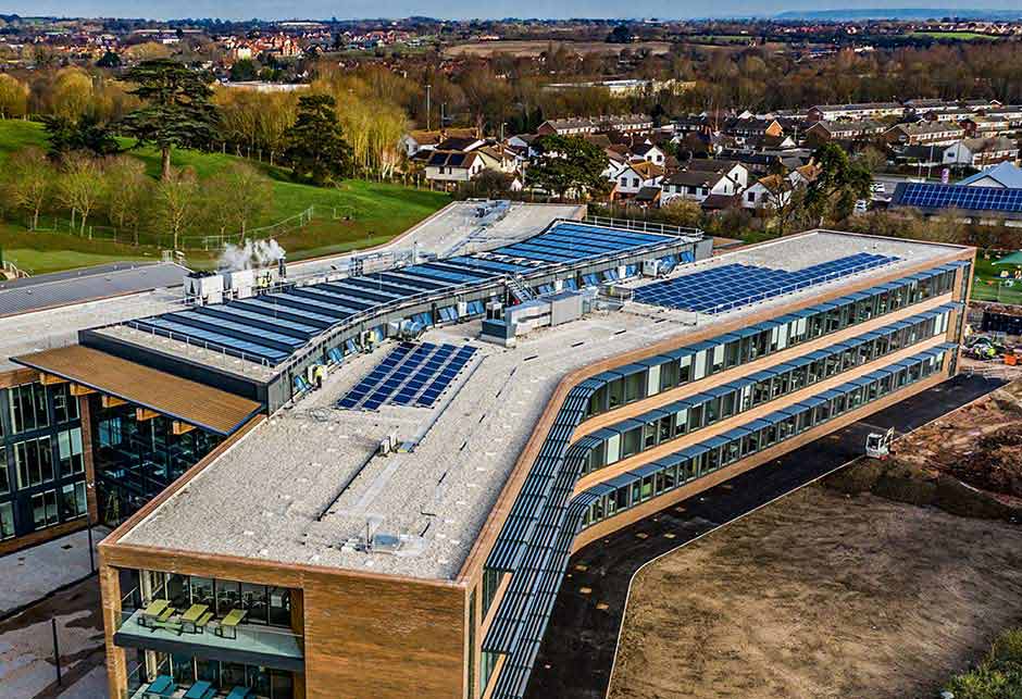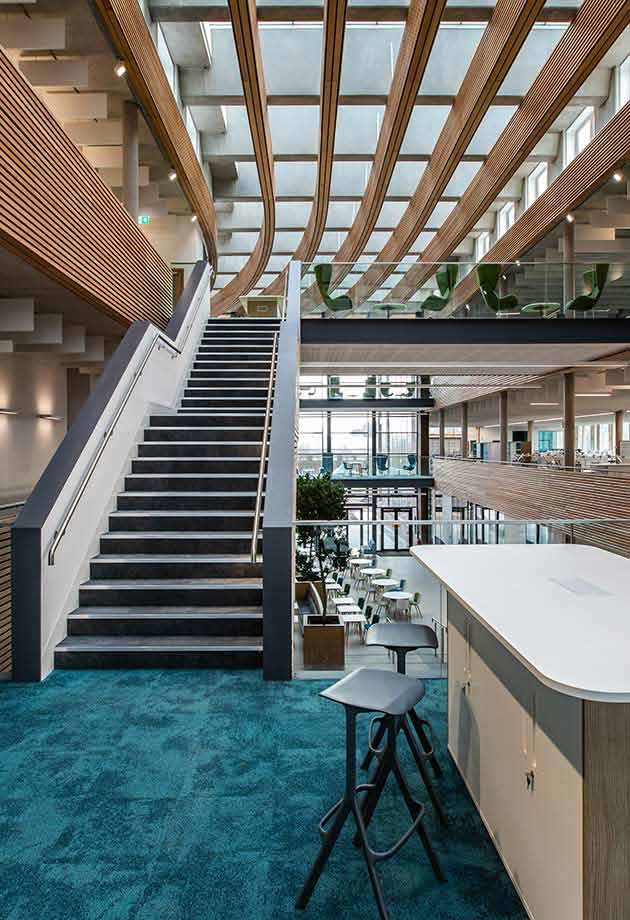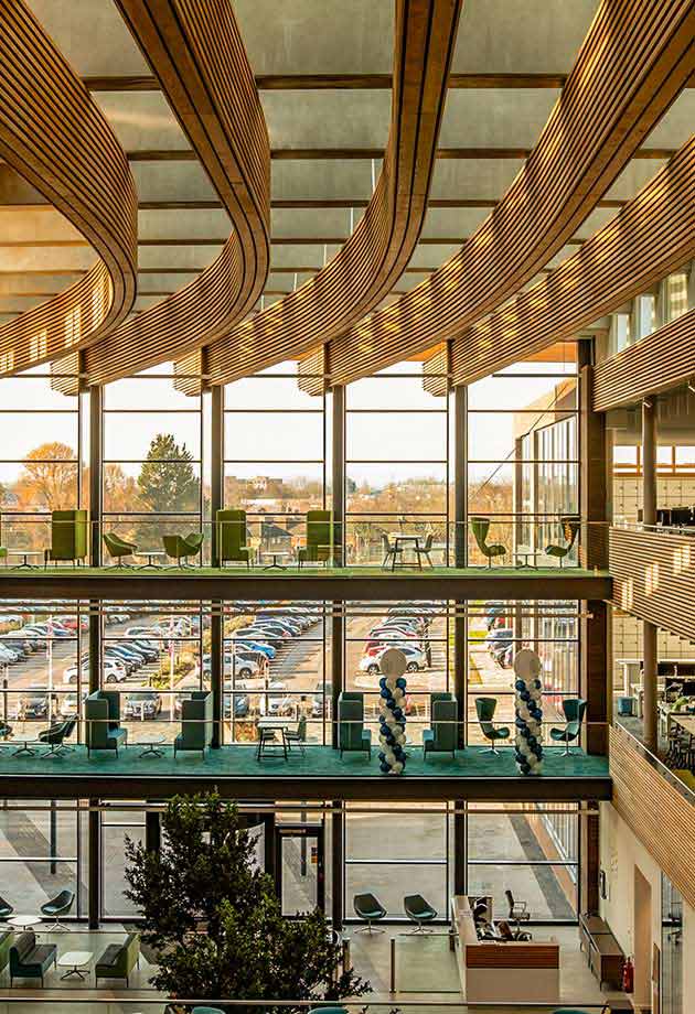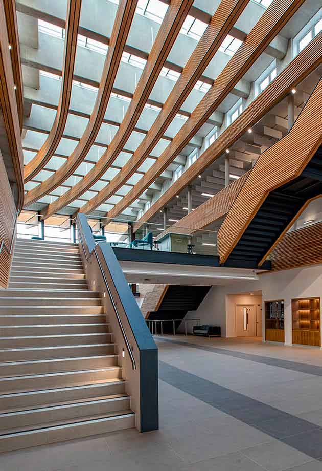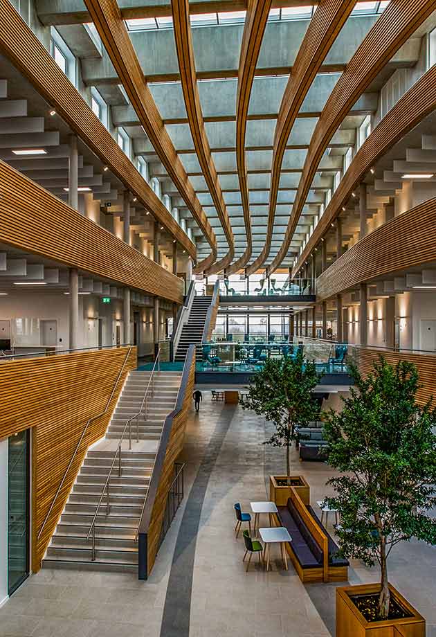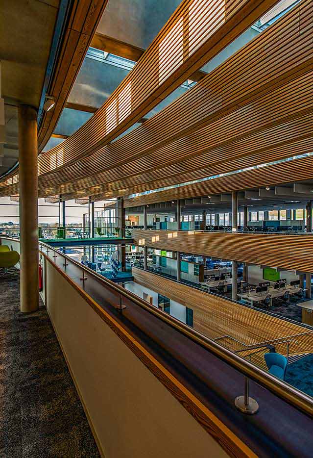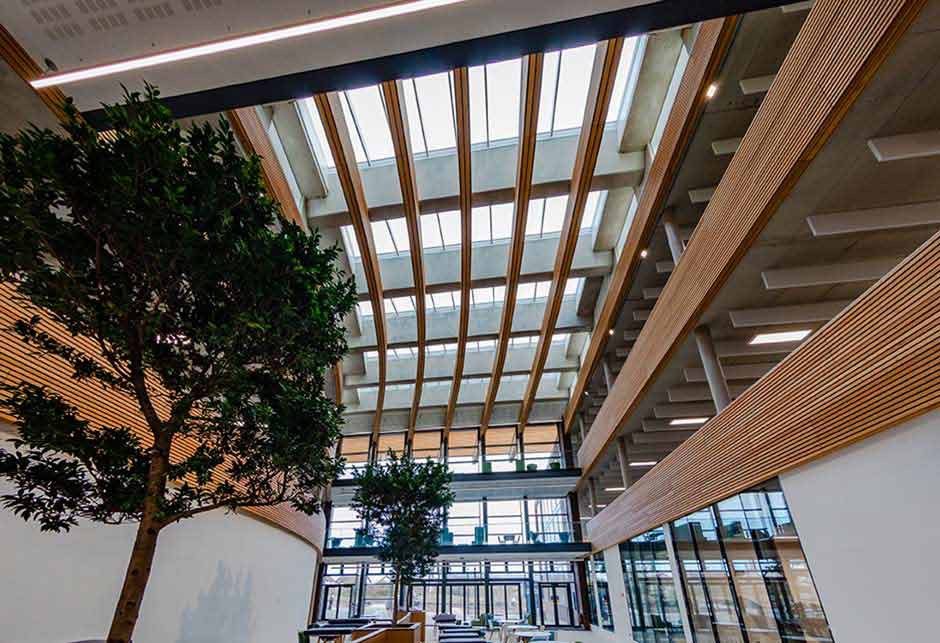 Two hundred modules of the VELUX Modular Skylight system were installed as part of an innovative lighting and ventilation strategy led by BAM Construction and AHR Architects for the Ministry of Defence’s new UK Hydrographic Office. Modularised and prefabricated, the modular skylights simplified a complex specification for natural daylight, first-class ventilation, and modern aesthetics in a central atrium area at the heart of the new development.