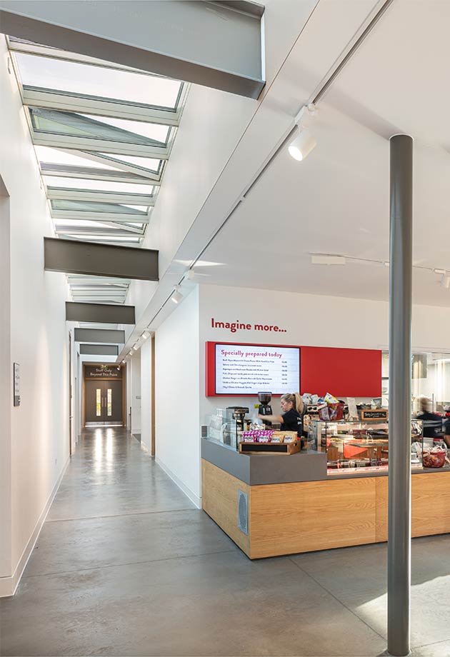 - The skylights helped define the public route through the building from café and exhibition space to the toilets and training centre end of the building