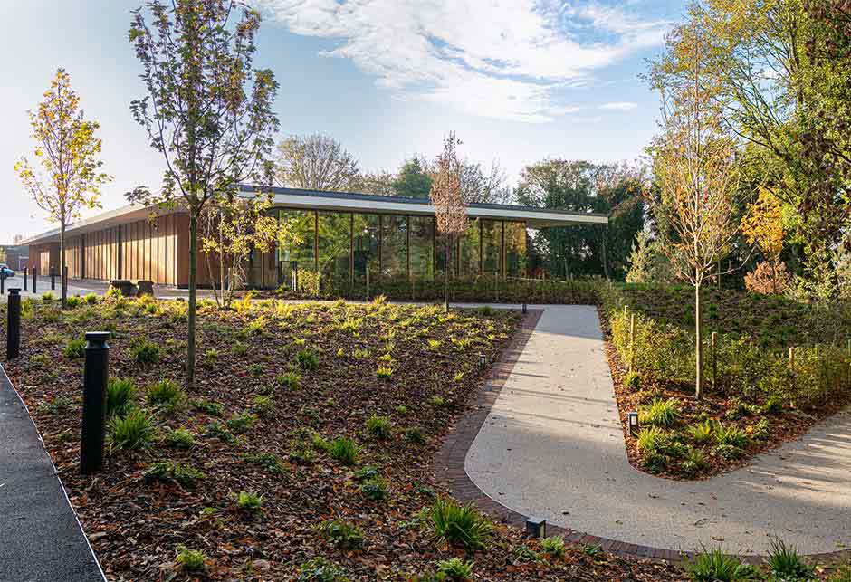 - Floor to ceiling vertical glazing further connects the centre’s visitors to nature, providing pleasant views out towards the garden