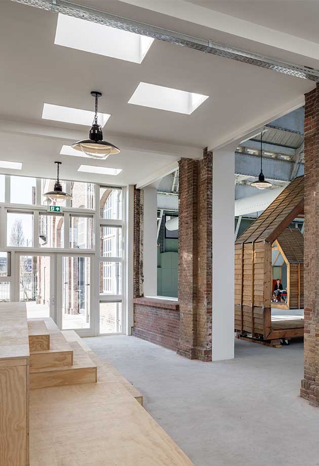 - Rutene i sagtaket har blitt skiftet ut med VELUX overlysmoduler. Sju VELUX nordlys leverer det primære dagslyset, og 14 ventilerende overlysmoduler slipper inn frisk luft i bygningen.