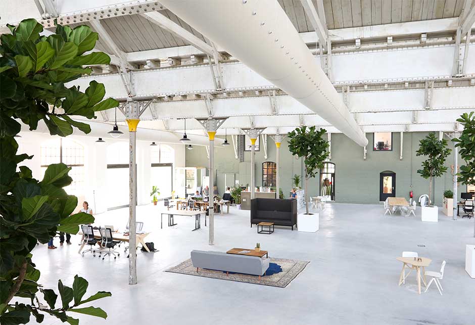En historisk hall er forvandlet til trendy arbeidsplass for 150 gründere