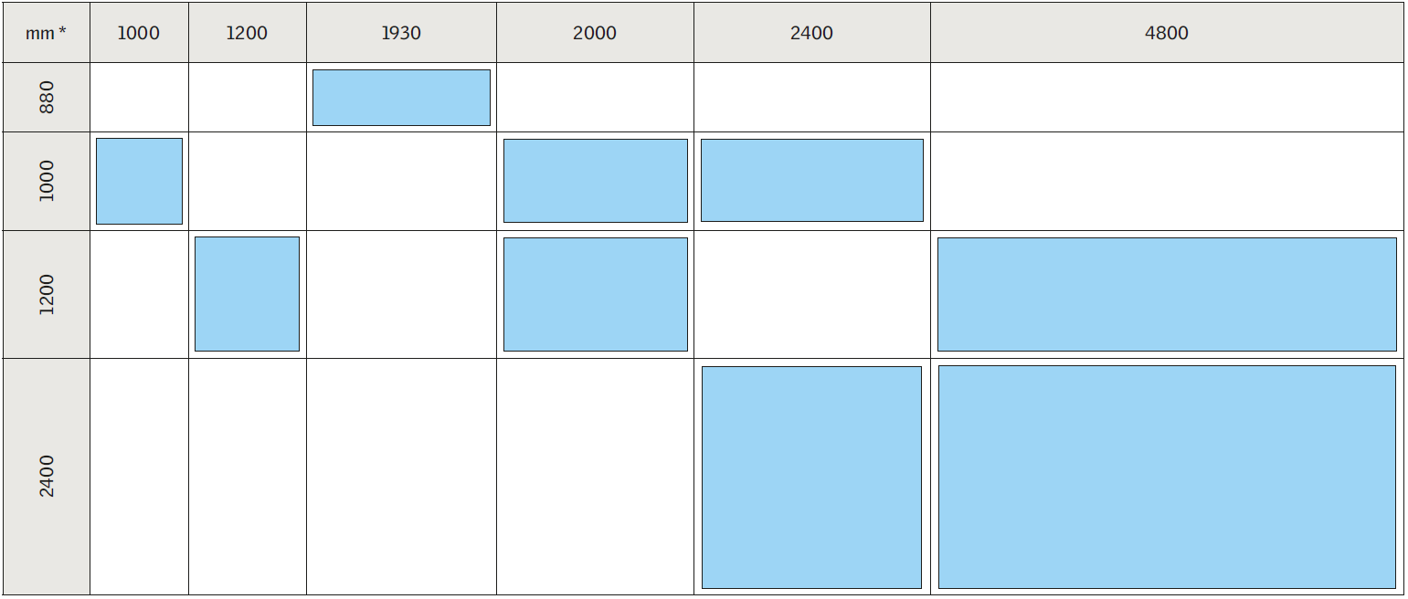 Lysmål 88 × 193 cm 100 × 100 cm 100 × 200 cm 100 × 240 cm 120 × 120 cm 120 × 240 cm 120 × 480 cm 240 × 240 cm 240 × 480 cm